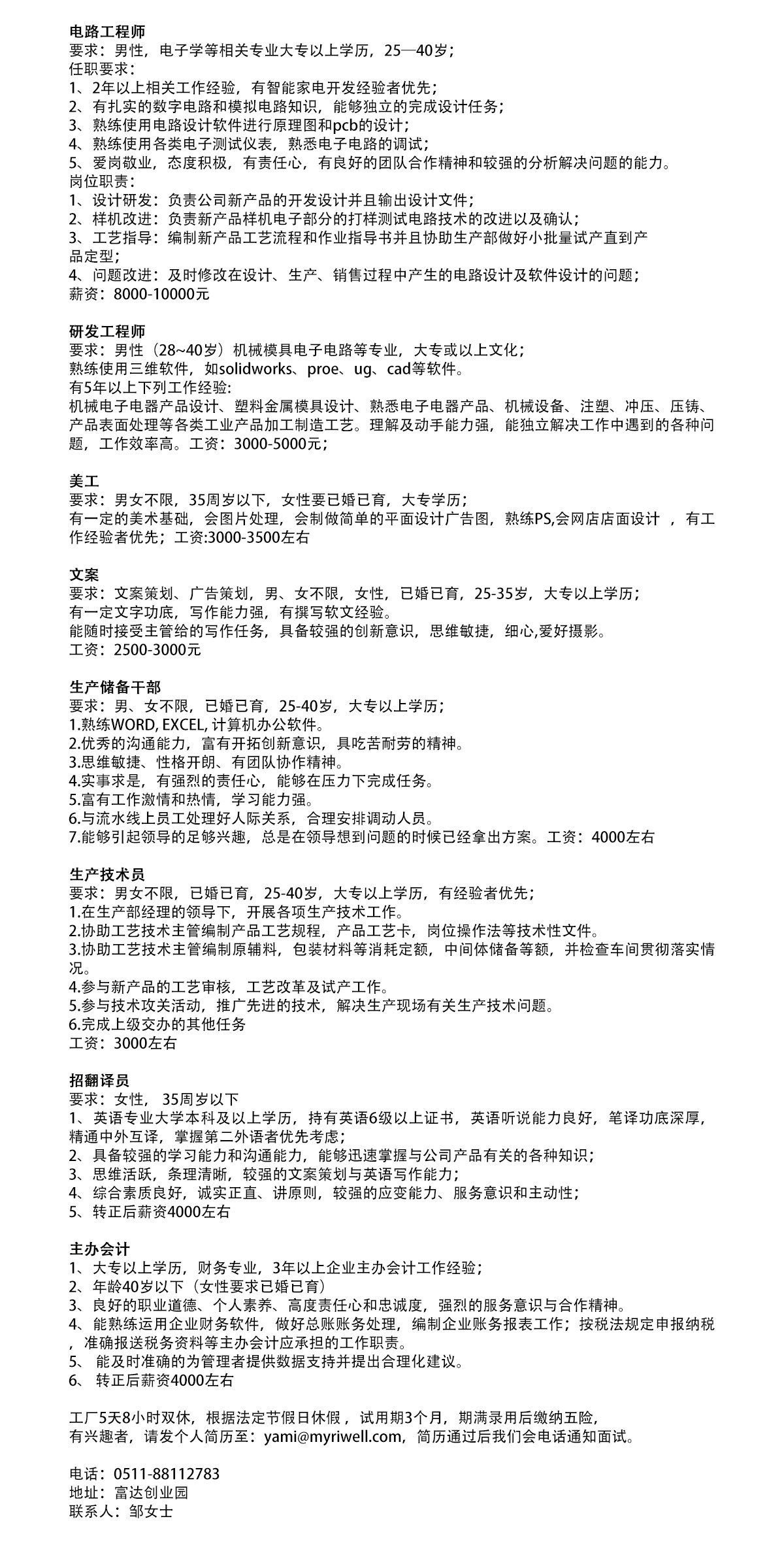 简历请发至邮箱:paris@myriwell.com